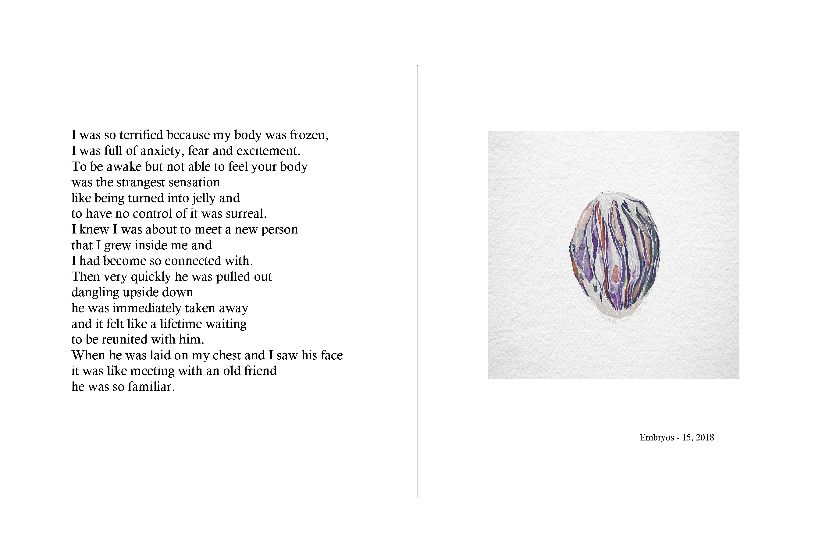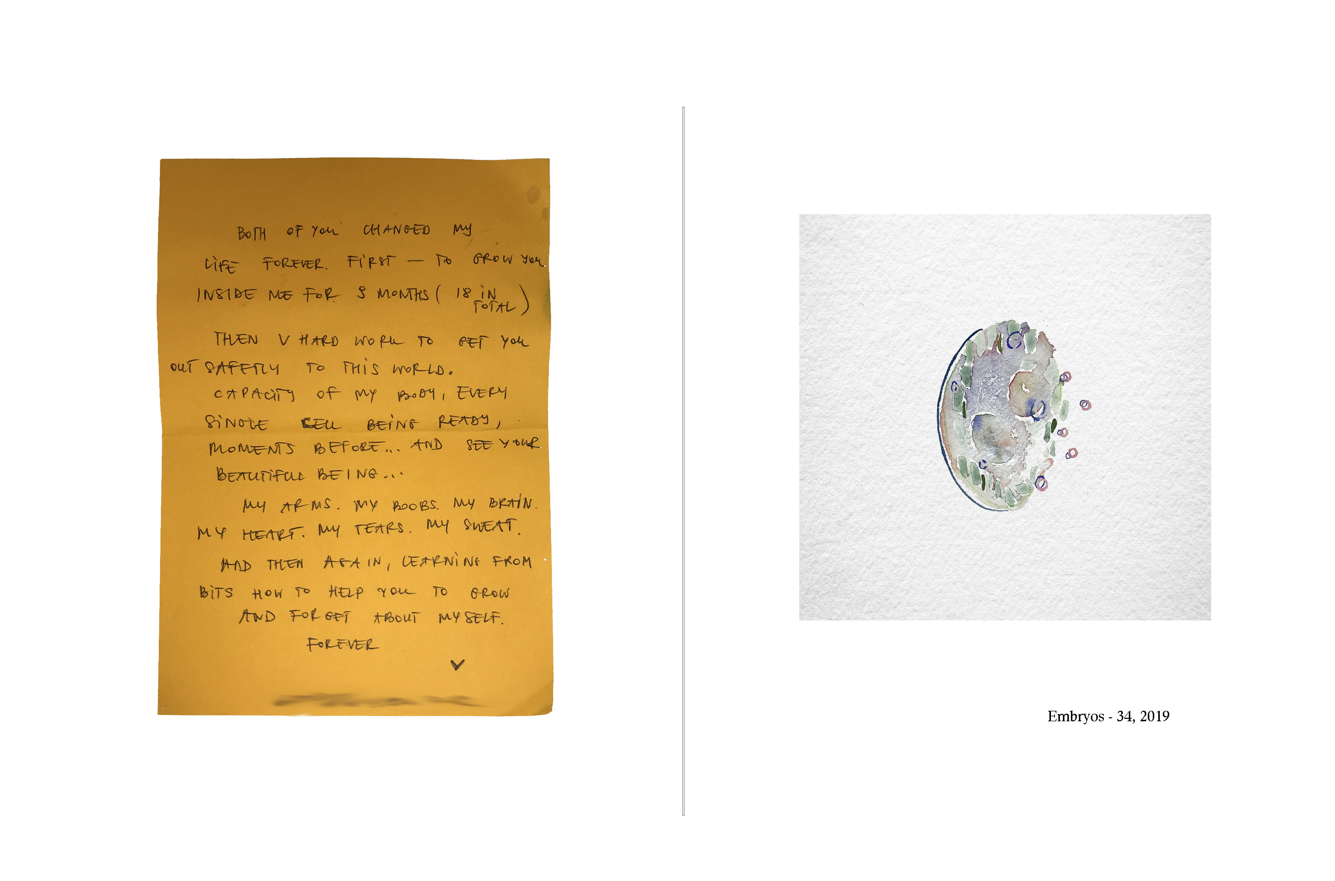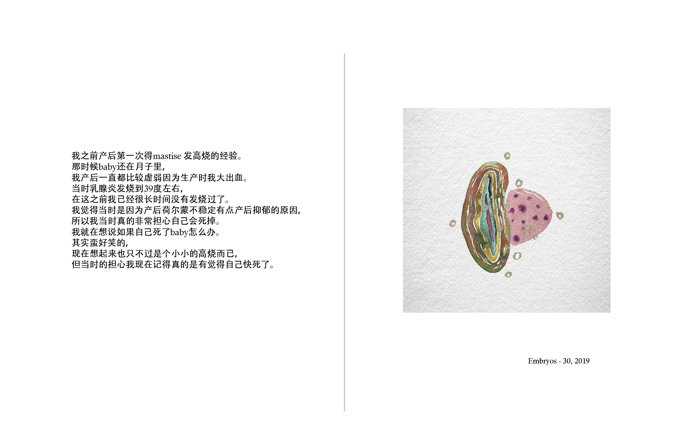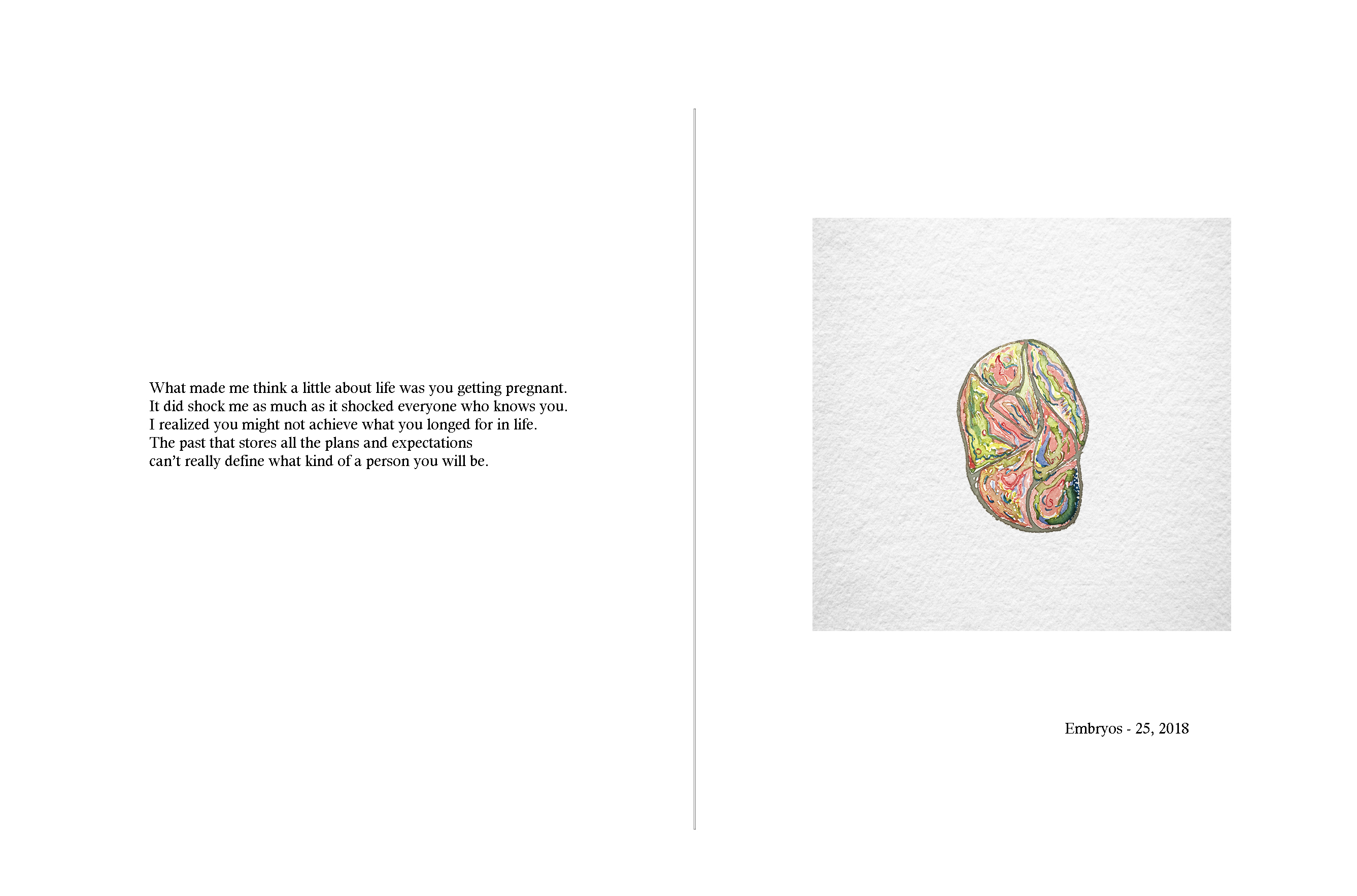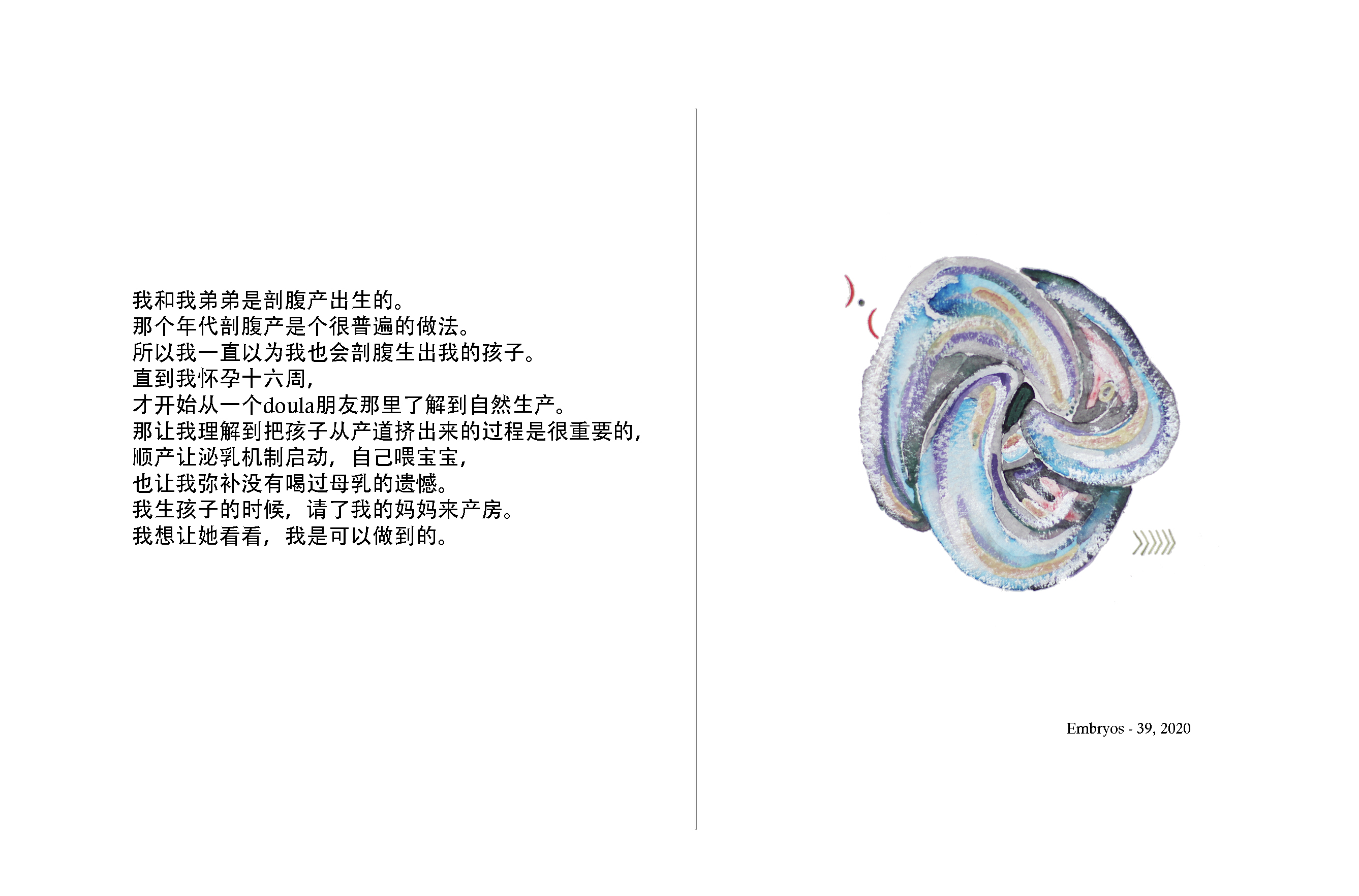 Through a story submitted by the participant, the artist paints a portrait of the participant as "embryos." The topic of the story revolves around “the moment of existence.” People tell stories about life and death, giving birth, existential crisis, memories that linger or even boredom.
